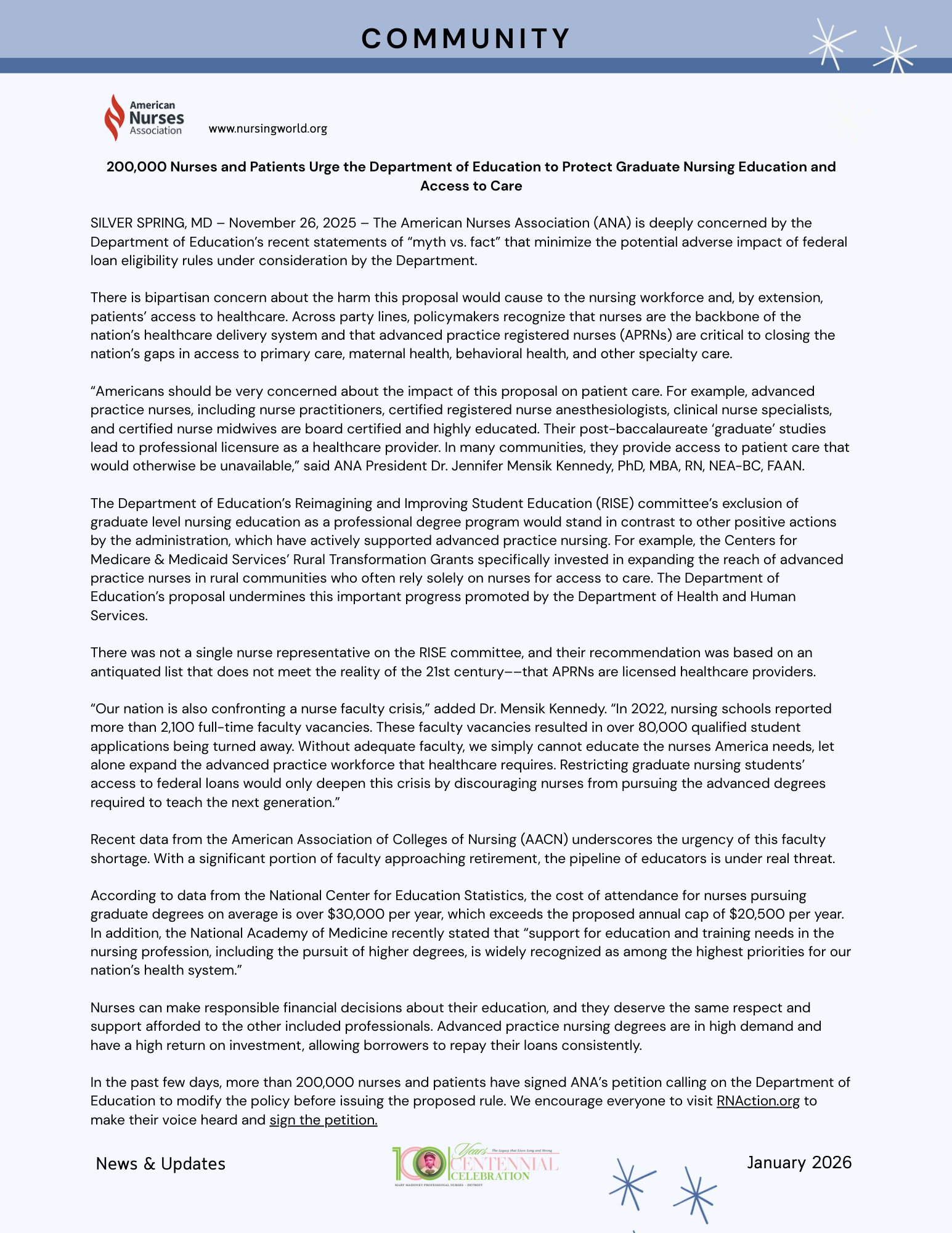 - To maintain the standards of the nursing profession through enhancing, empowering, and improving the quality of life for individuals.